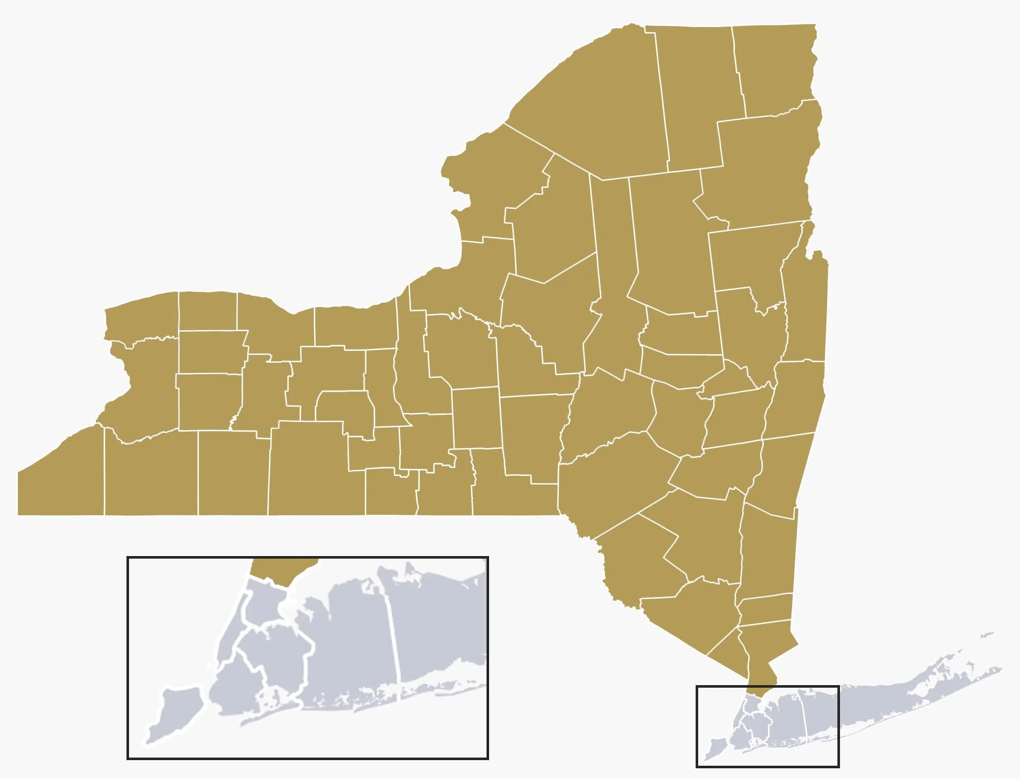 All counties in NY state EXCEPT Bronx County, Kings County, Nassau County, New York County, Queens County, Richmond County, & Suffolk County